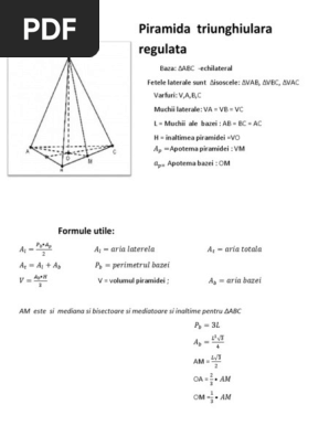 Piramida triunghiulara regulata formule piramida triunghiulara piramida arie laterala arie totala volum tetraedru regulat muchii alte formule utile: